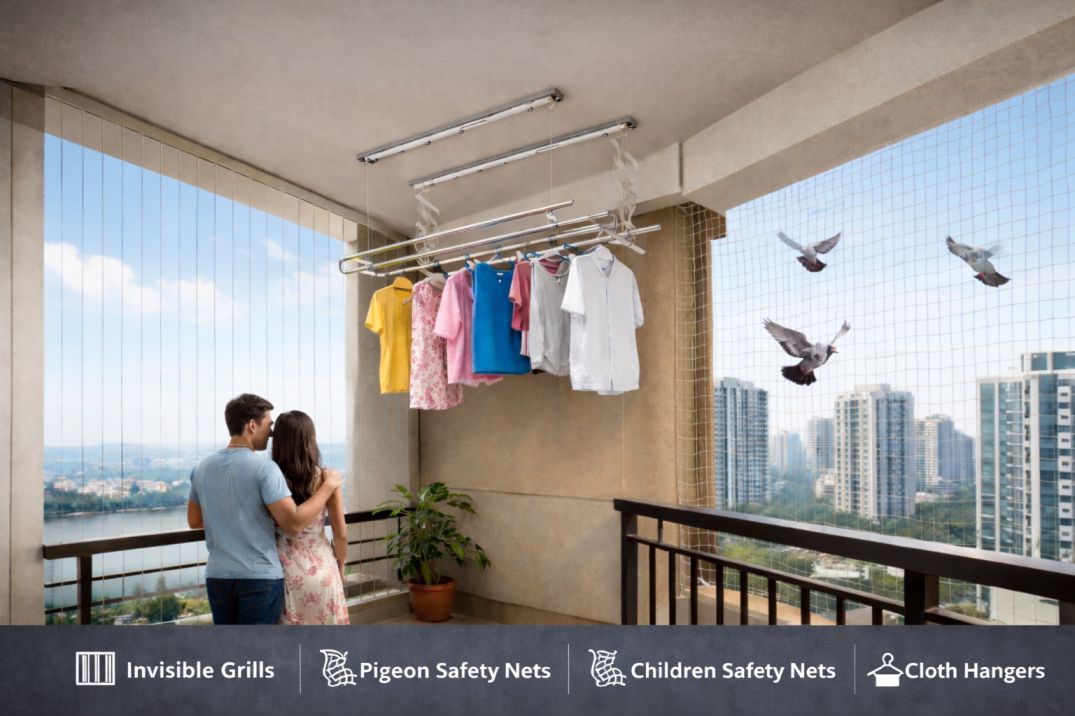 Safe, strong invisible grills for balconies and windows, designed to protect without blocking the view. Perfect for modern homes in Chennai.
